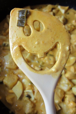 - Gerade über Soßen gibt es viel unnötiges Getue. Zu Spargel braucht man eine Sauce hollandaise, zu Spagetti eine Bolognese, zu Penne eine scharfe Arrabiata, zu Gnocchi Gorgonzola-Soße usw. blalbla, kann man haben, braucht man aber nicht. Da ich Gemüse in der Regel schmore, ist immer etwas Saftiges dabei, hier oder da auf dem Teller ein Klecks Mandelmus, Tahin oder Butter dazu. Experimentieren und Improvisieren Sie ruhig. Widerstehen Sie der Versuchung, Fertigsoßen für Nudeln oder Salat zu kaufen. Essig, Öl, Pfeffer, Salz, Kräuter, fertig ist die Salatsoße. Evtl. ein Klecks Joghurt oder Senf. Das ist alles.